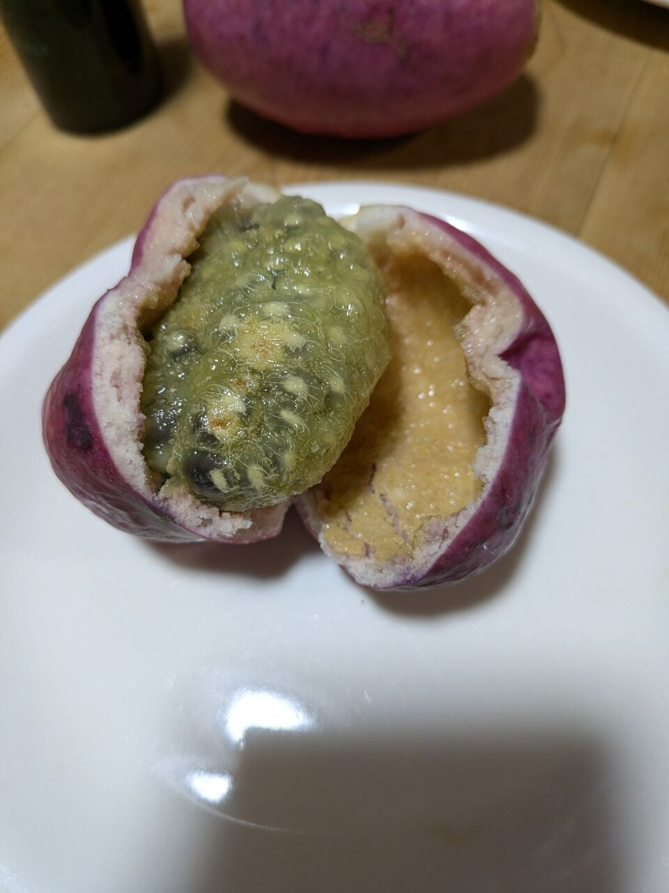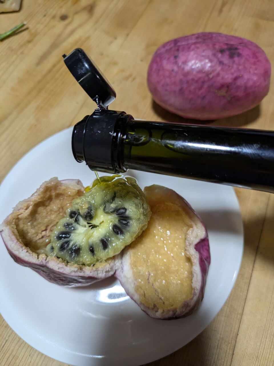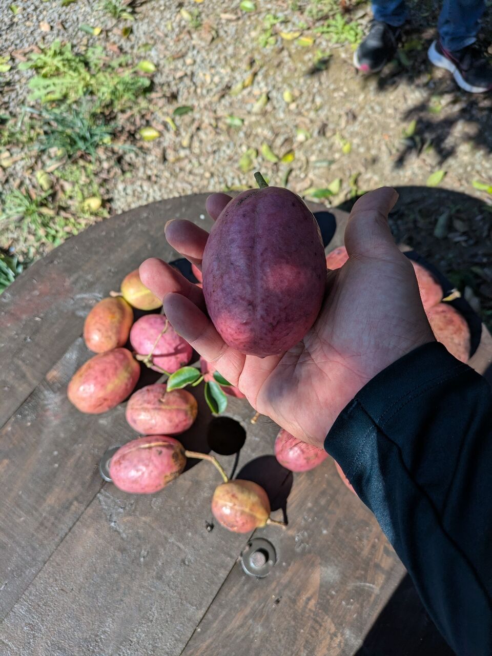 ひおきの暮らし ひおきの食 秋の味覚、木の上になってましたよ。オリーブとの相性は! 2025.11.29 せっぺとべお せっぺとべおです。今年も沢山なってましたよ〜。手のひらサイズは、かなりBIGです。これは何かって?そう、ウンべで〜す。 標準語では、ムベ かな?アケビと似ているけど、違うんだよね~。食べましょう、やっぱデカい!皮をむくと、沢山のタネのまわりに、トロッとした果肉があります。甘いんだよね。試したくなるのよ、オリーブオイル!う〜ん、甘さとオリーブの青さが、うまく足されない〜。悪くはないけど、相乗効果までは無い。でも、完食です。食の秋、オリーブオイルとの相性を探しますよ〜。