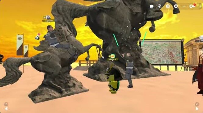 メタバース上で、義弘公のように、馬の砂像に乗ることができます。