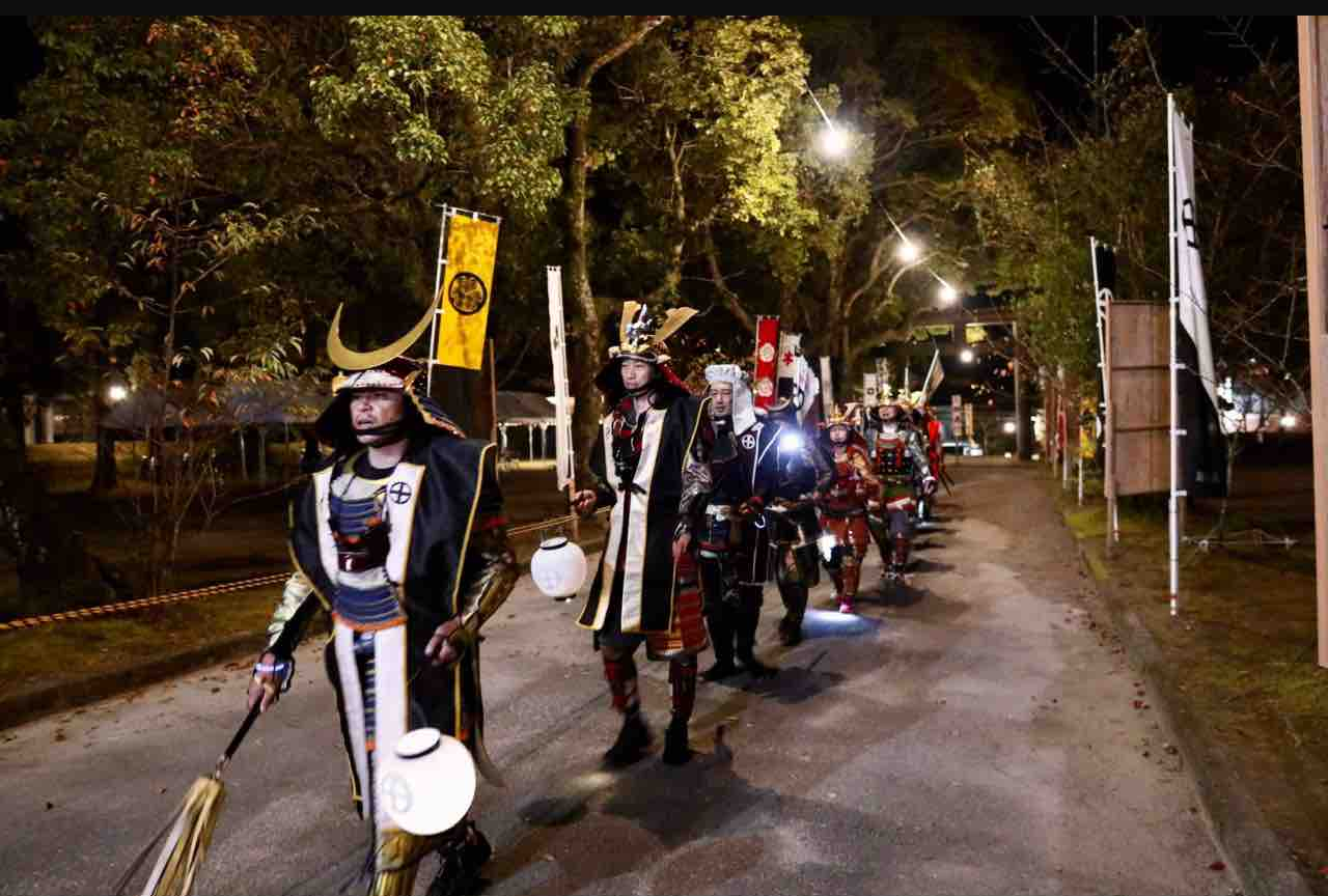 かがり火が焚かれる夜の参道を、鎧武者が厳かに歩みを進める、あのイメージだ。