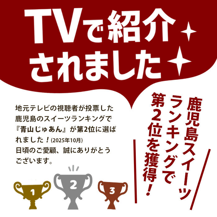 今年、地元テレビの視聴者投票が行われた『鹿児島のスイーツランキング』でも、鹿児島全体の第2位を飾るなど、大人気のお店なんです!