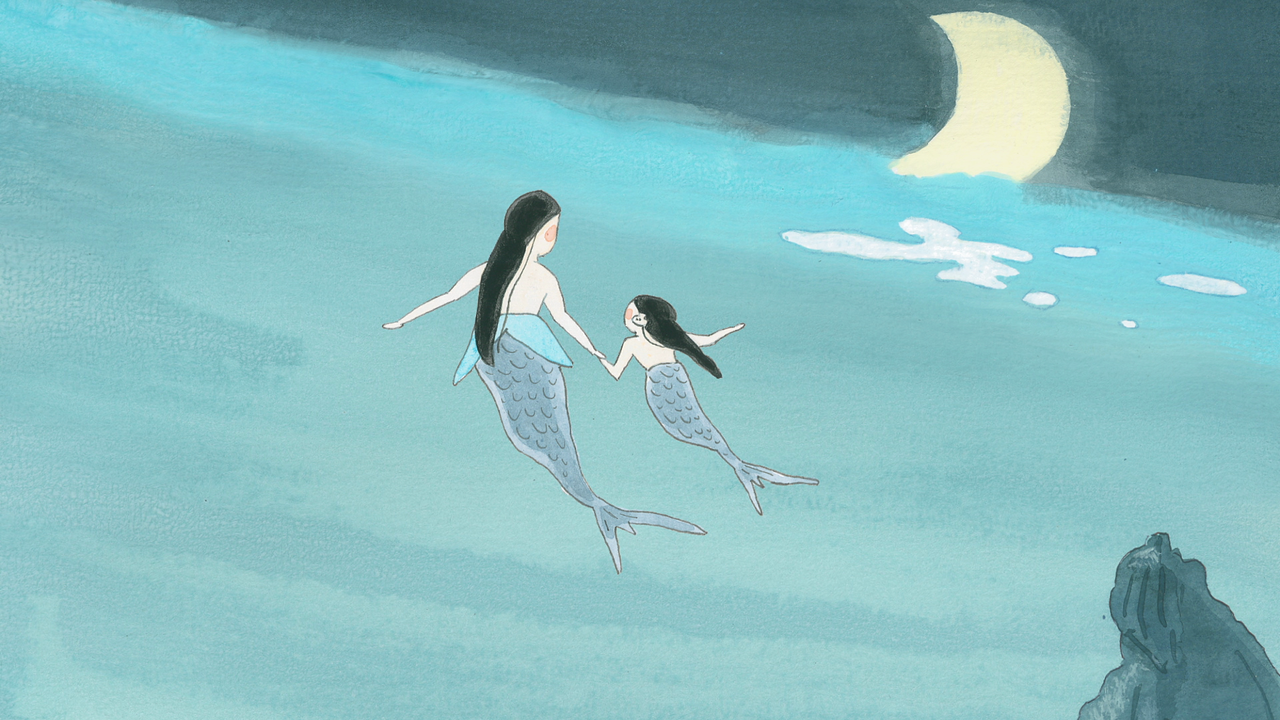 ・老夫婦が亡くなると母親の人魚がやってきて「おさず」は海に帰っていった。