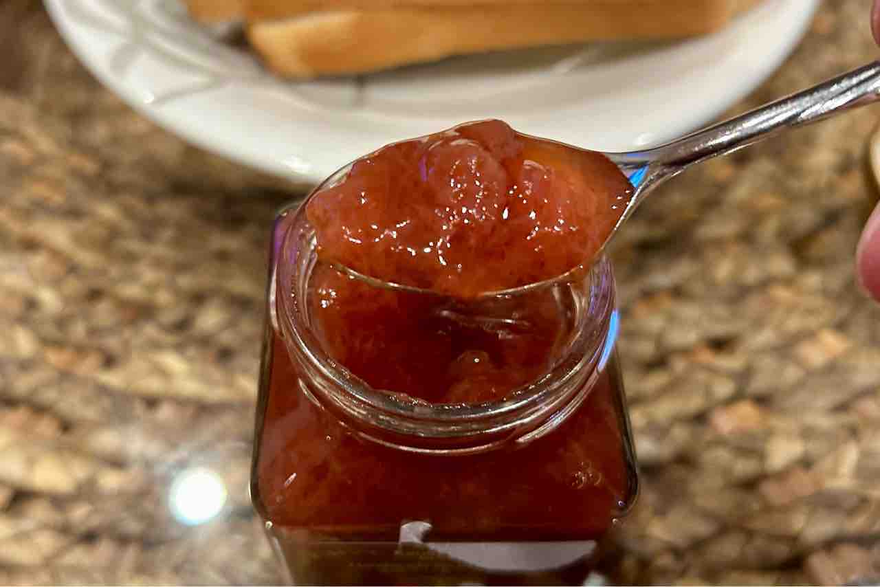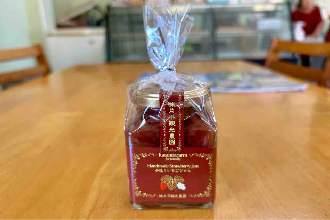 しっかり焼いたトーストに片平観光農園のいちごジャムをたっぷりかける。