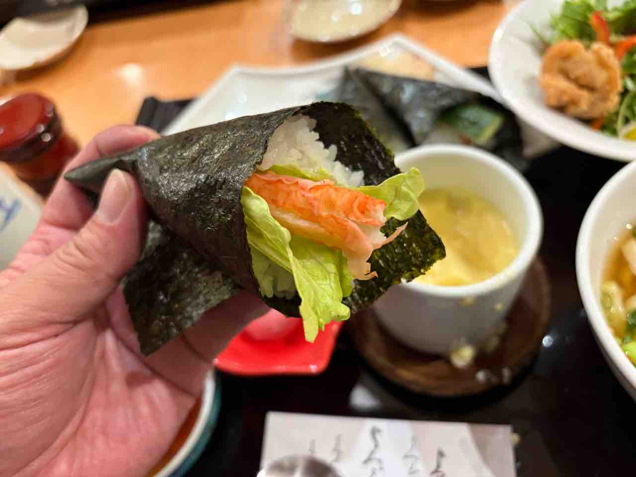 私は「手巻き寿司セット」をオーダーしました!うどんも食べたいし、唐揚げも食べたいし、寿司も食べたいし