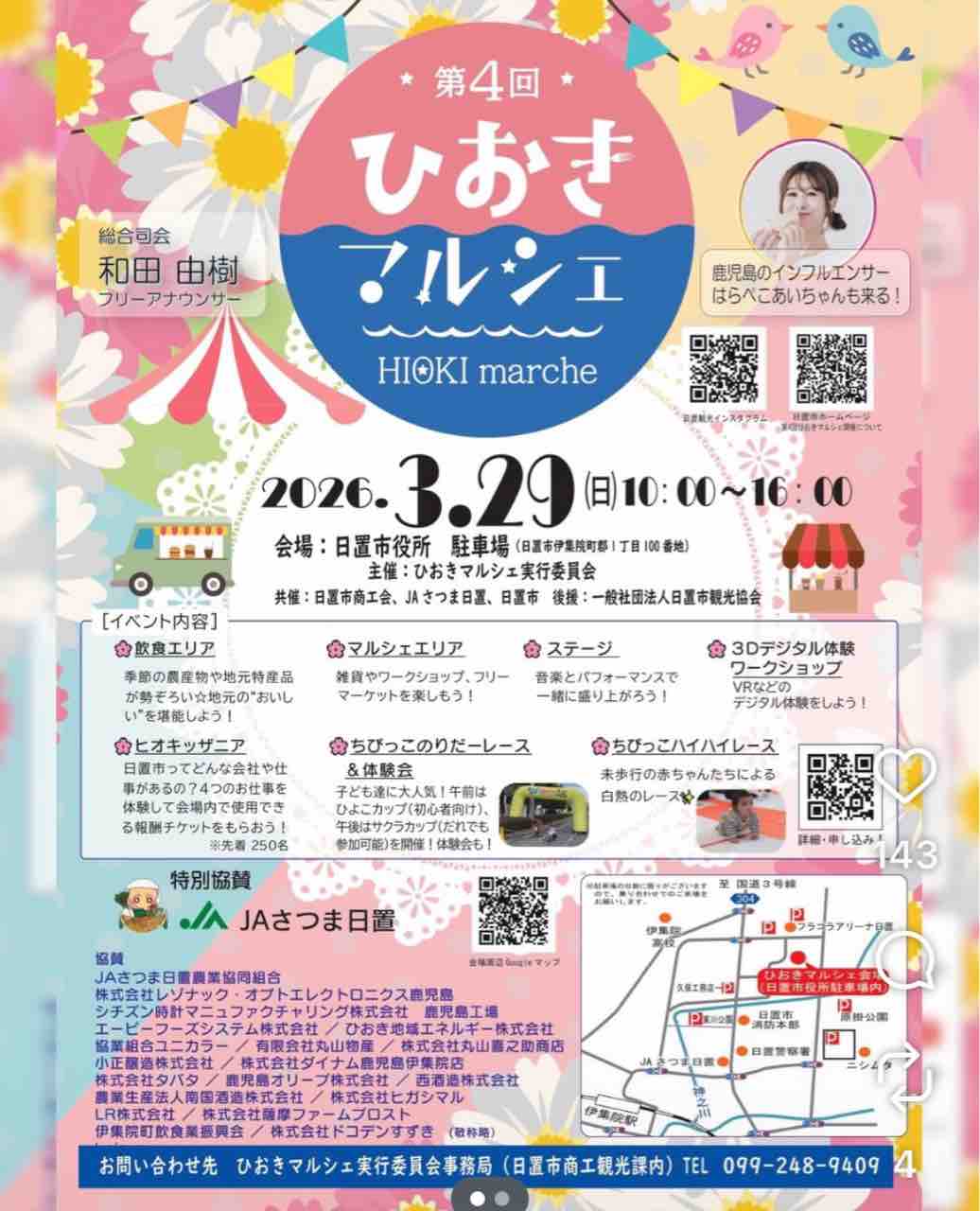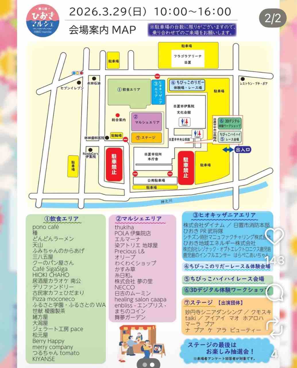 午前中おのおの自由に「ひおきマルシェ会場」にお越しいただき楽しんでいただきます!集合時間設定なし。マルシェ会場(日置市役所本庁舎周辺)にお好きな時間に来場。