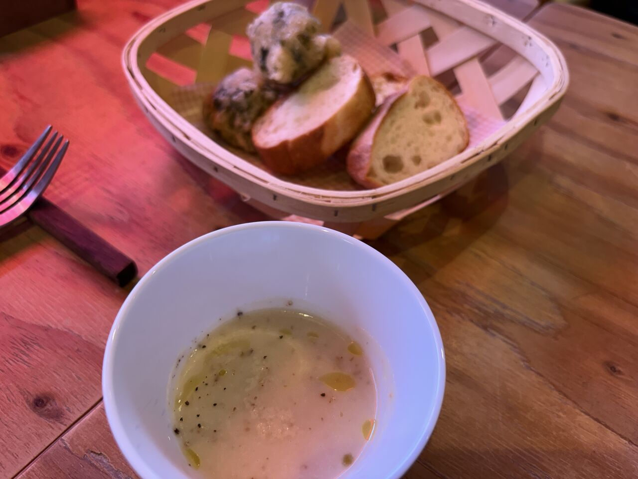 パン2種のうち、奥の丸いのが「ゼッポリーネ」