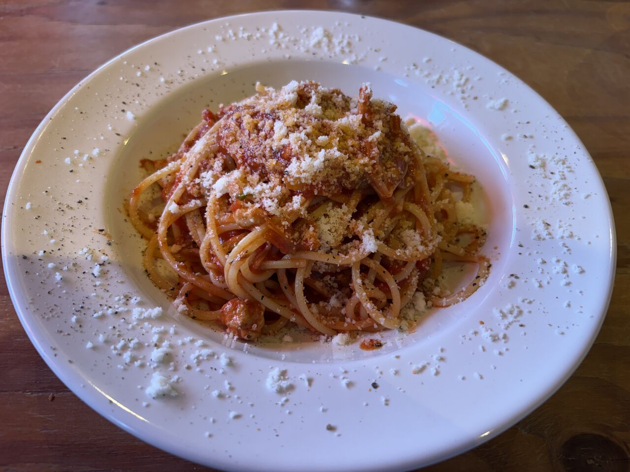 いろいろ木の子と鶏ひき肉のラグートマトスパゲッティ